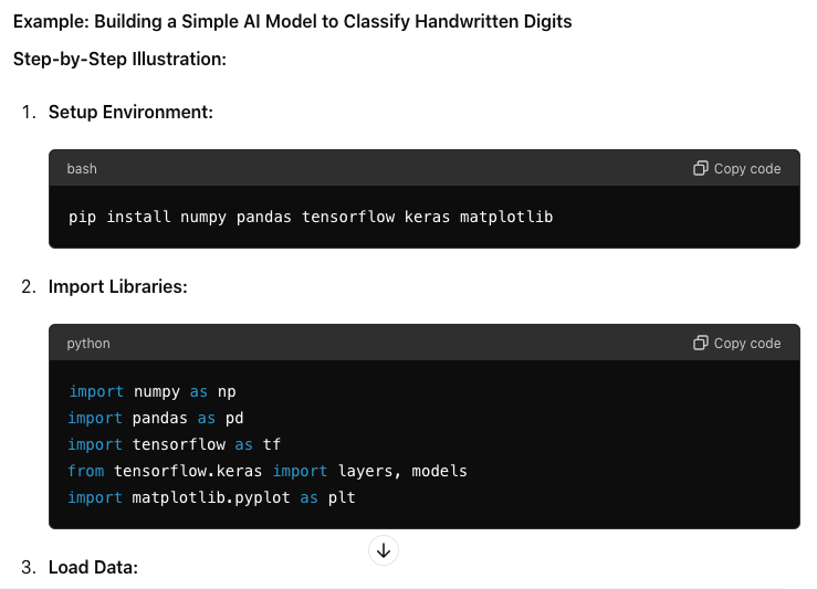 - Simple Projects: Start with beginner-friendly projects like predicting house prices, classifying images of digits (MNIST dataset), or creating a chatbot.