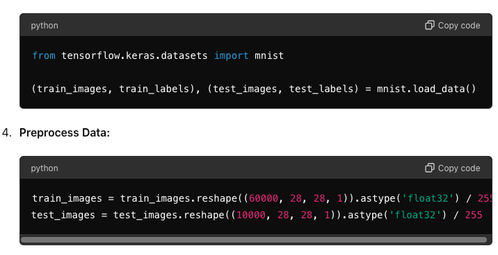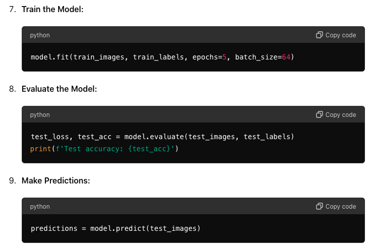 - Model Building: Use libraries like TensorFlow/Keras to build and train your model.