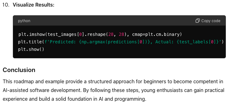 2. Could you illustate a simple step by step method to take them from wannabes to competence in creating software, assisted by AI? Examples would be great.